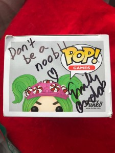 A Fortnite Funko Pop signed by Emily Andras and donated by @tvwithapb.